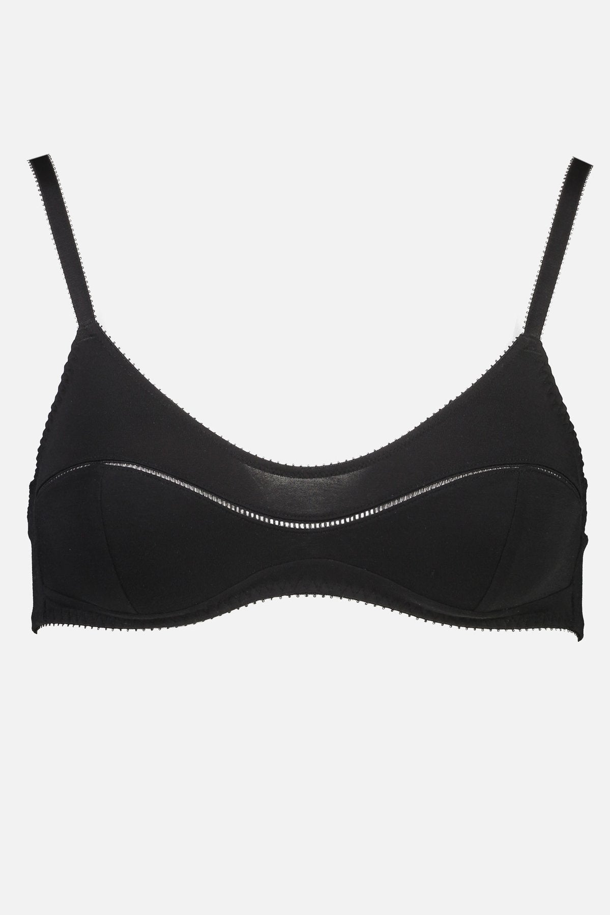The ladder stitch detail frames the natural curve of your breasts and provides added support at the widest point across the bust. The Maggie bra is underwire free to accommodate the natural ebbs and flows in your breast size.