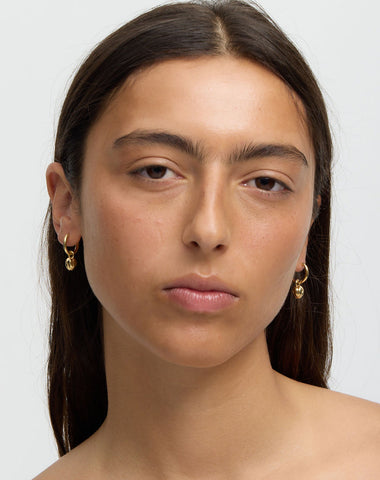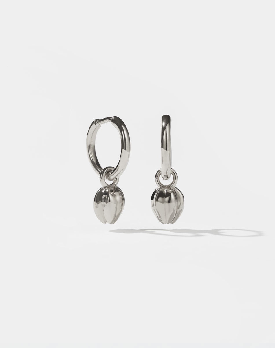 Closed tulip charms suspended from hinged Aria hoops. Minimal and considered, these earrings offer a soft botanical accent that feels timeless and personal. Designed to be worn effortlessly, they bring gentle symbolism to an everyday essential.