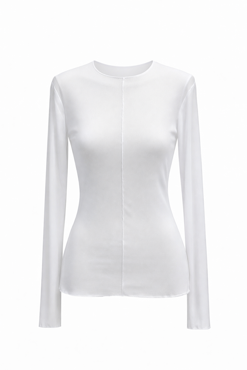 The Zarra Top by South of Eden in a classic fitted sheer mesh top. Perfect as a layer or over a cami. It features a centre front and back exposed baby locked seam.