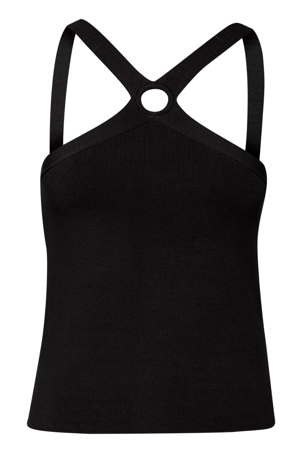 The Ragna Top by Karen By Simonsen is a stunning addition to any wardrobe. This elegant black top features a crossover strap design and a keyhole detail at the neck, adding a stylish flair that beautifully highlights the shoulders and arms. With its sleek sleeveless silhouette and hip-length cut, the Ragna Top offers a flattering straight fit that transitions effortlessly from day to night. It’s perfect for layering under blazers or cardigans or can be worn on its own for a chic, polished look.